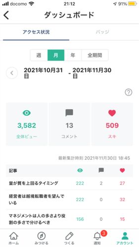 まずはPVから! まず嬉しかったことは、11月の記事が全て上位だったことです!こんなことは初めてですね!PVもはじめての3,000オーバーです!コメントが13件、スキが509というのも全て初めてです! 毎日投稿するようになってから一年が経ちましたが、ずっと…